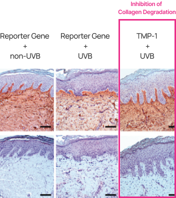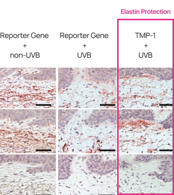 In skin tissue treated with TIMP-1, the protective effect on elastin fibers was clearly observed.